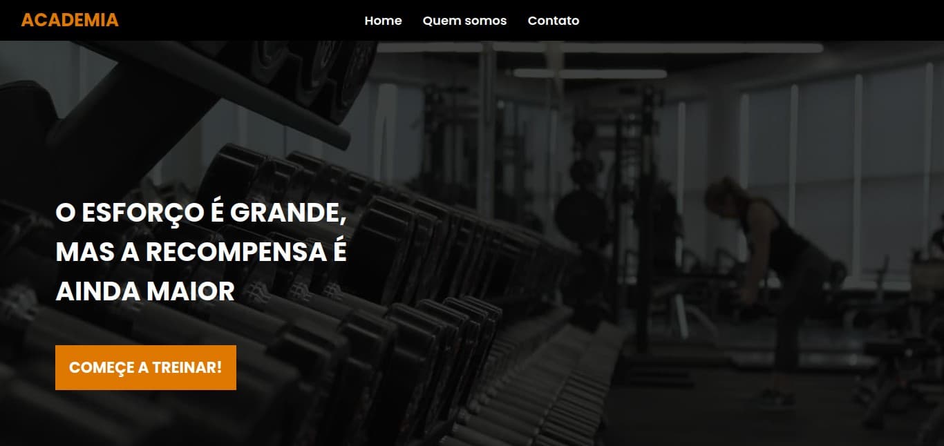 Um website de apresentação de uma academia, design desenvolvido por mim, apresenta os principais diferencias da academia, as suas atividades, sua localização e um formulário para contato.